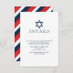 Navy blue and red Bar Mitzvah rsvp card featuring a bold Star of David that creates a wonderful focal point on this contemporary rsvp. The back side features navy blue, white and red stripes. Personalise the colours of this response card to suite your needs for your boy coming of age ceremony and see it right away. If you love this Bar and Bat Mitzvah details card design and wish to purchase coordinating cards, please visit VG Invites on Zazzle