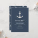 Navy Blue Beige Simple Nautical Anchor Baby Shower Invitation