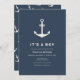 It's a boy!, Nautical baby shower theme, celebrate upcoming baby shower with our beige rustic minimalist nautical anchor in navy blue colour. You can personalise your own text and colour via "personalise this design".