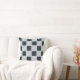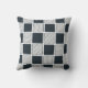 Navy Blue Black and White Chequerboard Stripes Throw Pillow.