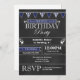 Navy Blue Black Chalkboard Birthday Invitation