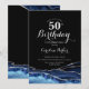 Navy Blue Black Silver Agate 50th Birthday Invitation