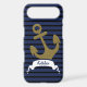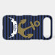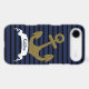 © 2013 Socialite Designs. Our elegant nautical themed mobile phone case has dark blue and black stripes, a texture-look gold anchor, and a ribbon template for you to personalise with your name. All design elements can be moved, resized, rotated or deleted. Please contact Socialite Designs if you would like a different colour combination or help with customising. PLEASE NOTE THAT ALL DESIGN ELEMENTS ARE PRINTED ON TO THE CASE.