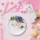 Navy Blue Blue Blush Pink Rose Botanical Wedding Paper Plate