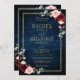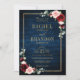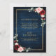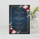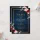 Dark navy blue burgundy floral geometric double side wedding Invitation featuring elegant bouquet of navy blue, royal blue , white , blush, burgundy, marsala rose and sage green eucalyptus leaves and elegant gold glitter geometric neutral frame. Please contact me for any help in customisation or if you need any other product with this design.