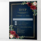 Dark navy blue burgundy floral geometric wedding Invitation featuring elegant bouquet of navy blue, royal blue , white , blush, burgundy, marsala rose and sage green eucalyptus leaves and elegant gold glitter geometric neutral frame. Please contact me for any help in customisation or if you need any other product with this design.