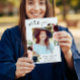 Navy Blue Blush Floral Graduation Photo Thank You Card