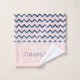Navy Blue Blush Pink Chevron Glitter Name Initial Bath Towel Set