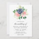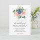 Navy Blue Blush Pink Floral All in One Wedding Invitation