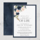 Navy Blue Blush Pink Floral Celebration of Life Invitation