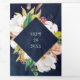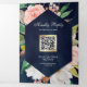 Navy Blue Blush Pink Floral Gold QR Code Wedding Tri-Fold Invitation
