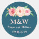 Wedding monogram favour tag stickers in a navy blue with blush pink watercolor flowers. A great way to decorate wedding favours.