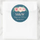 Navy Blue Blush Pink Floral Monogram Wedding Classic Round Sticker