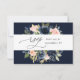 Navy Blue & Blush Pink Floral w Meal RSVP - Navy Card