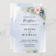 Navy Blue & Blush Pink Flower Wedding Reception Invitation