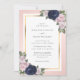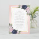 Elegant floral navy blue and blush wedding invitation featuring blue and blush pink flowers. Matching items available.