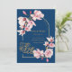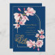 Navy Blue Blush Pink Magnolia Floral Save the Date Invitation