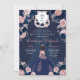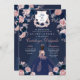 Navy Blue & Blush Pink Princess Castle Quinceanera Birthday Invitation