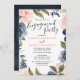 Navy Blue Blush Pink Rose Boho Engagement Party Invitation