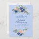 Beautiful Boho style graduation announcement features hand-painted floral watercolor graphics in rich tones of navy and dusty blue, blush pink, silvery white botanicals and white baby's breath. Personalise it with the year of graduation, name of graduate and the school they graduated from. You can also include what degree they received. Background is dusty sky blue. The reverse side has a pattern of dusty blue leaves against a blush pink background.
