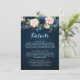 Navy Blue Blush Pink Rose Boho Wedding Details Enclosure Card