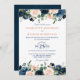 Navy Blue Blush Pink Rose Boho Wedding Invitation