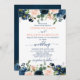 Navy Blue Blush Pink Rose Boho Wedding Invitation