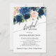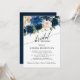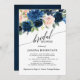 Navy Blue Blush Pink Rose Botanical Bridal Shower Invitation