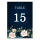 Beautiful floral boho wedding table number card features hand-painted watercolor floral graphics / roses in rich tones of navy blue and blush pink / peach and charming hand lettering style font. Please contact me for any help in customisation or if you need any other product with this design.