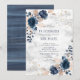 Navy Blue Blush PInk Rose Marble Floral Wedding Invitation