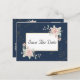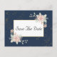 Navy Blue Blush Pink Wedding Save The Date Postcard