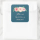 Navy Blue Blush PinkFloral Bridal Shower Favour Ta Square Sticker
