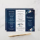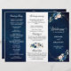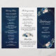 Navy Blue Blush Rose Trifold Wedding Program