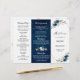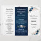 Navy Blue Blush Rose Trifold Wedding Program