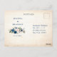 Beautiful floral boho rustic country floral barn food wedding RSVP Postcard features hand-painted watercolor floral graphics / roses in rich tones of Navy blue royal blue and blush pink / peach with gold glitter geometric frame. Please contact me for any help in customisation or if you need any other product with this design.