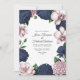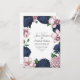 Navy Blue & Blush Watercolor Floral Wedding Invitation