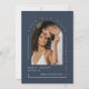 Navy Blue Boho Arch Photo QR Code Save Our Date In Invitation