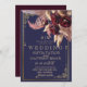 Navy blue Boho Floral red roses pampas Wedding Invitation