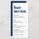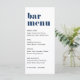 Add these customisable bar menu card stationery to your event tablescape. They feature bold retro typography and simple green and black typography. This navy blue bar menu card is perfect for weddings, bridal showers, baby showers, and so much more.