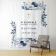 Navy Blue Botanical Baptism Photo Backdrop Tapestry