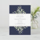 Navy Blue Botanical Greenery Wedding Photo Invitation