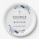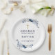 These modern elegant olive navy blue floral baptism paper plates can be personalised with your information in modern typography. Designed by Thisisnotme©