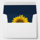 Botanical return address envelope, with customisable lettering and a peeking yellow sunflower on the inside. The sunflower is set on a navy blue background. Great for adding a floral touch to your cards and announcements.