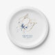 Elegant modern and cute navy blue and gold bow baby shower paper plates, "It's a Boy"