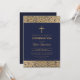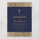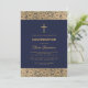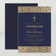 Navy Blue Boy Confirmation Floral Gold Roses Cross Invitation