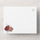 These wedding invitations feature a watercolor floral design with red and dusty coral roses, flowers and foliage on a navy blue background. Matching stationery also available.