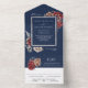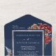 Navy Blue Burgundy Bloom Roses Botanical Wedding All In One Invitation