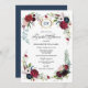 Navy Blue, Burgundy Bloom Watercolor Bridal Shower Invitation