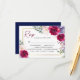Navy Blue Burgundy & Blush Floral Gold Frame RSVP Enclosure Card