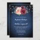 Navy Blue Burgundy Blush Floral Lights Wedding Invitation